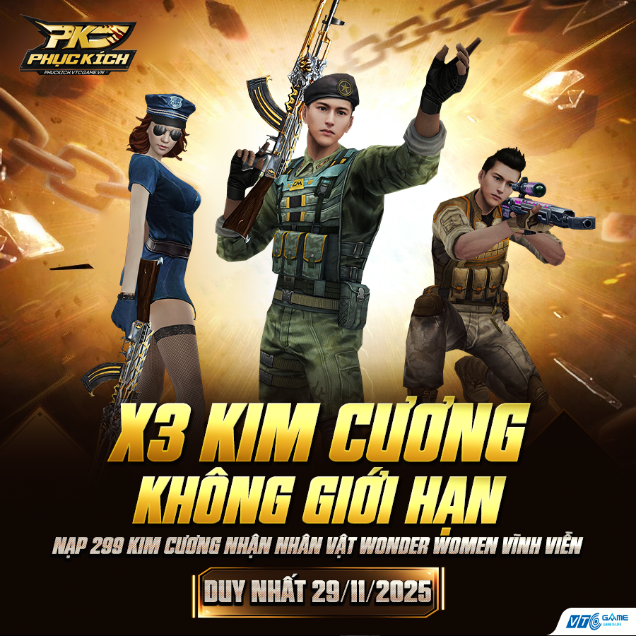 SỰ KIỆN GIỚI HẠN - Nhanh tay nạp ngay nắm lấy cơ hội X3 Kim cương này nào các Xạ thủ ơi!
