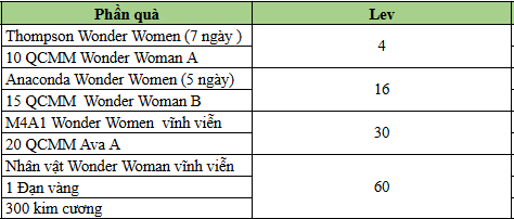 - 2 ngày: 30 QCMM Ava A + 200 kim cương + 01 đạn vàng