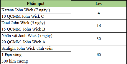 - 3 ngày: 10 QCMM John Wick C hoặc Ava C