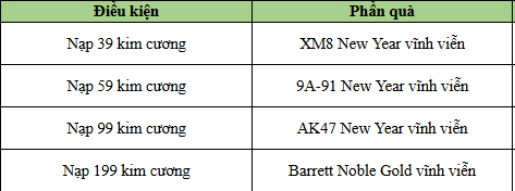 2. Điều kiện tham gia: Những xạ thủ đã nạp kim cương trước 01/03/2026 tiếp tục nạp từ 99 kim cương trở lên trong tháng 3 sẽ nhận được phần thưởng tương ứng