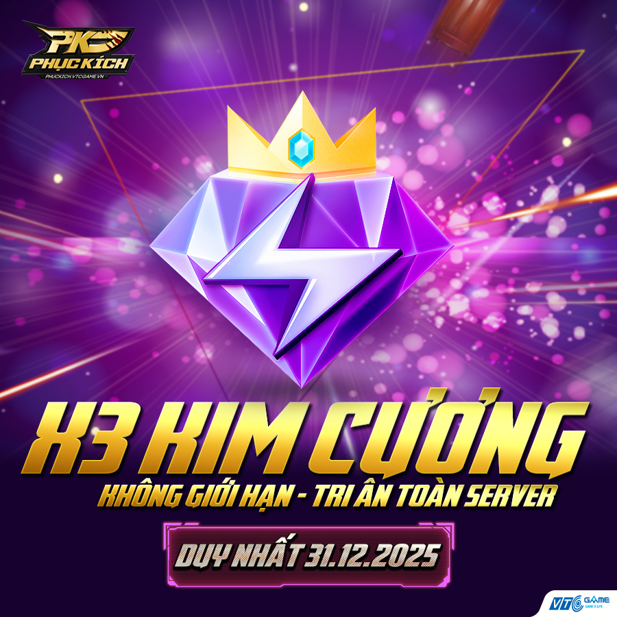 NGÀY CUỐI CÙNG CỦA NĂM 2025 RỰC RỠ VỠI NHÂN 3 KIM CƯƠNG - duy nhất ngày 31/12. Chi tiết sự kiện X3 kim cương như sau: