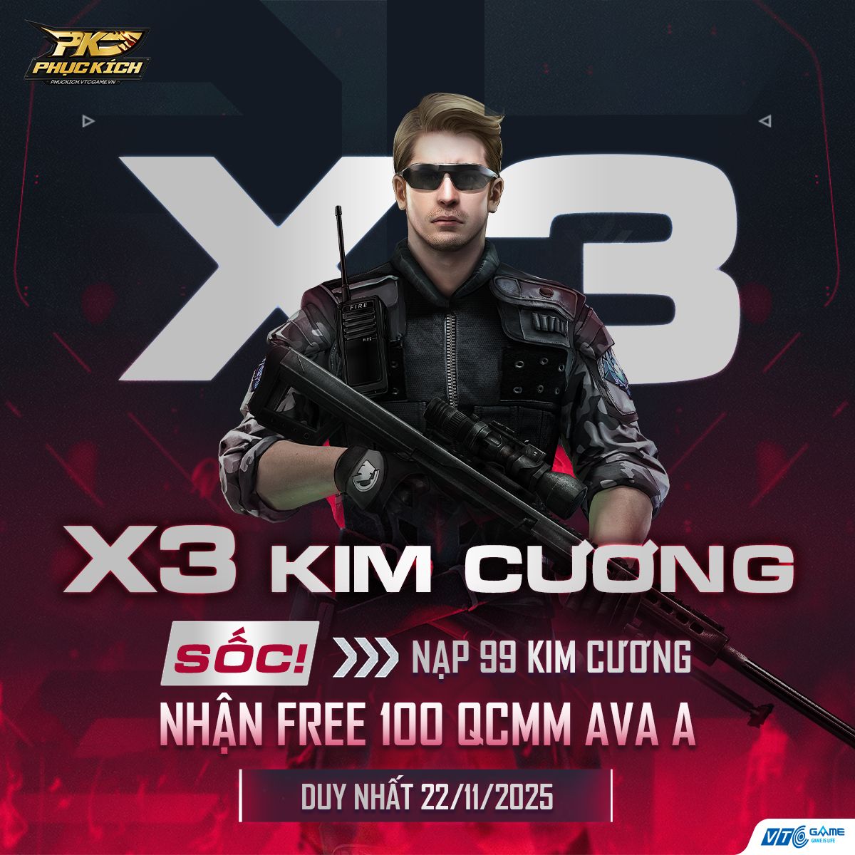 SỰ KIỆN GIỚI HẠN - Nhanh tay nạp ngay nắm lấy cơ hội X3 Kim cương này nào các Xạ thủ ơi!